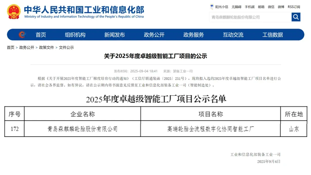 2025年9月,国家工业和信息化部公示年度“卓越级智能工厂”名单,7790cnm必发集团凭借 “高端轮胎全流程数字化协同智能工厂”项目成功入选。